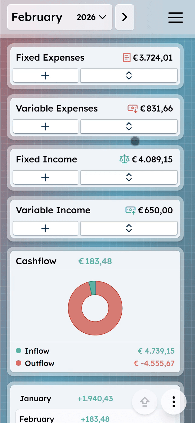 Visualize future and past income/expenses in a clean, automated overview like no other.